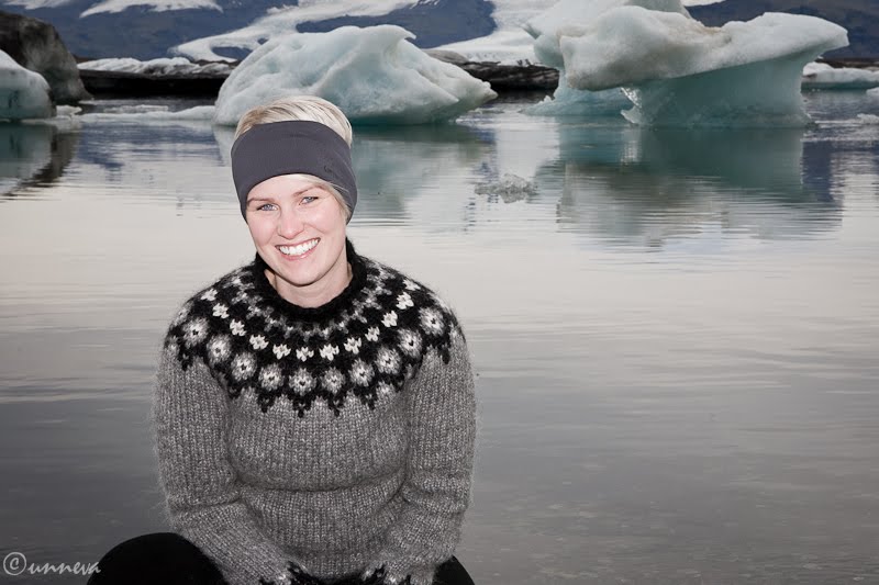 Þegar ég prjónaði hana ætlaði ég mér að gera short rows neðst aftan á og að framan yfir brjóstin. Þetta hugsaði ég til að hún myndi sitja betur. NEMA mér tókst einhvernvegin að gera allar short rows á sömu hliðinni s.s. ekki að aftan og framan. Þegar peysan var tilbúin var hún þess vegna miklu síðari að framan en aftan.
