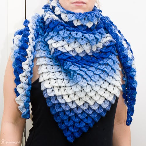 Kláraði þetta fína sjal um daginn og er alveg ofboðslega ánægð með það. Upphaflega langaði mig að gera svart/hvítt sjal en svo þegar ég fann ekki þannig garn sem ég var ánægð með ákvað ég að splæsa í þennan hrikalega fallega lit frá Evilla.