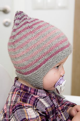 Hún er núna til sölu á Ravelry undir nafninu „Little gnome hat“ en ég setti líka link hér til hliðar. Maður þarf víst ekki að vera með aðgang að Ravelry til að nota hann. Mjög sneddí 😉
