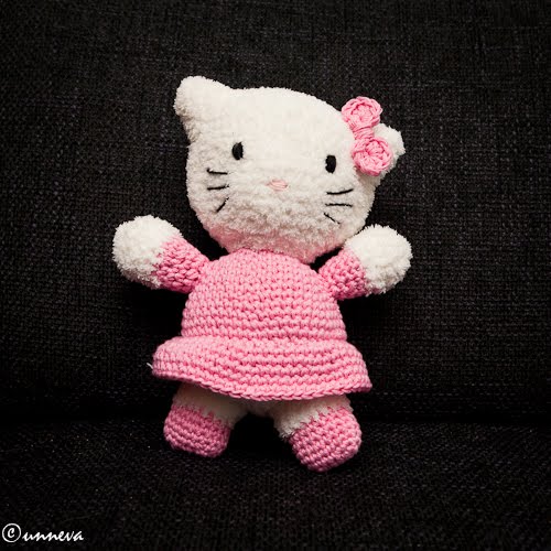 Ég á tveggja ára stelpu sem elskar Hello Kitty. Mig langaði alltaf að kaupa handa henni Hello Kitty bangsa en þeir eru bara svo óóógeðslega dýrir. Svo þegar ég sá þetta: http://www.etsy.com/listing/61025426/pdf-kitty-108-inches-27-cm-amigurumi, þá stóðst ég ekki mátið.