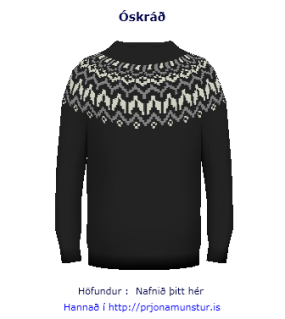 Mér finnst ótrúlega gaman að búa til mín eigin lopapeysumunstur. Reyndar heppnast þau misvel en eftir að ég fór að nota www.prjonamunstur.is þá gengur það aðeins betur. Mæli með þessari síðu fyrir þær sem langar að prófa og fikta.