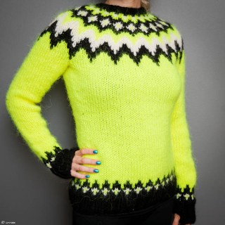 Nú þegar dóttir mín er komin í heiminn og bumban í rénun get ég loksins byrjað að nota neon lopapeysuna sem ég prjónaði fyrr í sumar. Reyndar hef ég enn ekki haft tilefni til þess en skellti mér í hana og tók almennilega mynd.